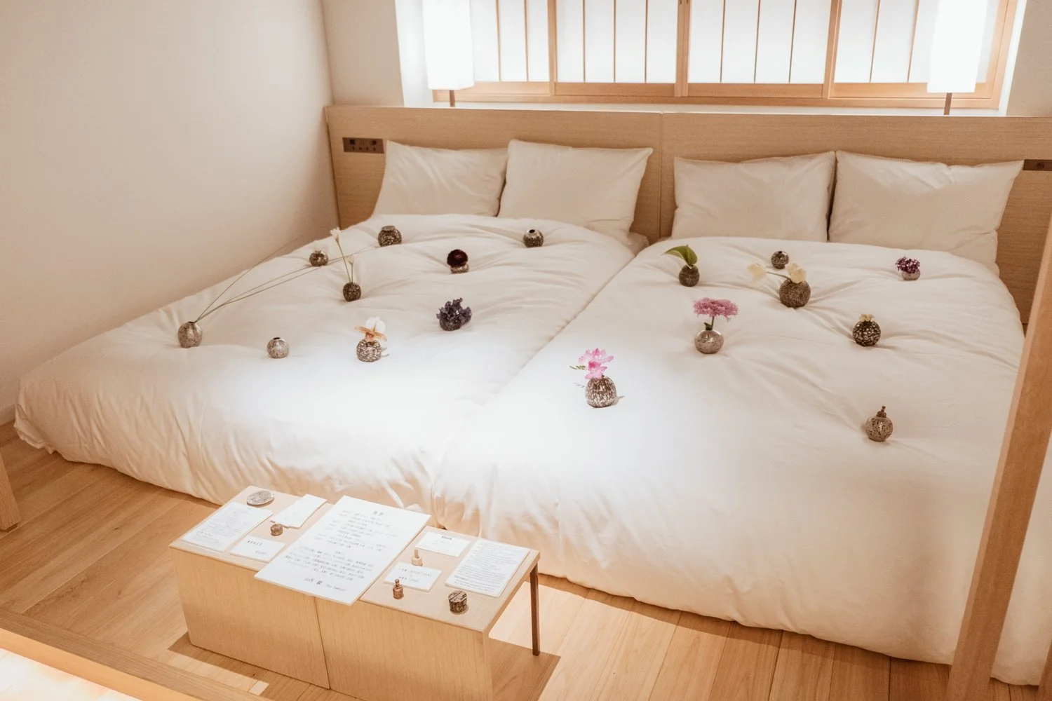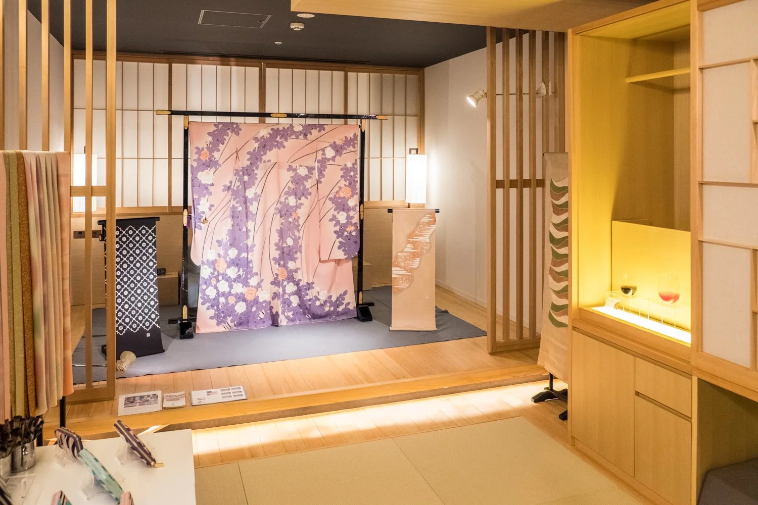It was my first time entering the guest rooms of Hotel Kanra, and I was pleasantly surprised by their Japanese-style interior design and by the unusual ways of displaying craftworks in its guest rooms. A real feast for craft lovers' eyes! I spent more than 3 hours wandering around the hotel saying hello to the craftsmen I know and meeting new creative people. It was the richest craft exhibition I've seen so far in Kyoto, I hope it will come back next year!